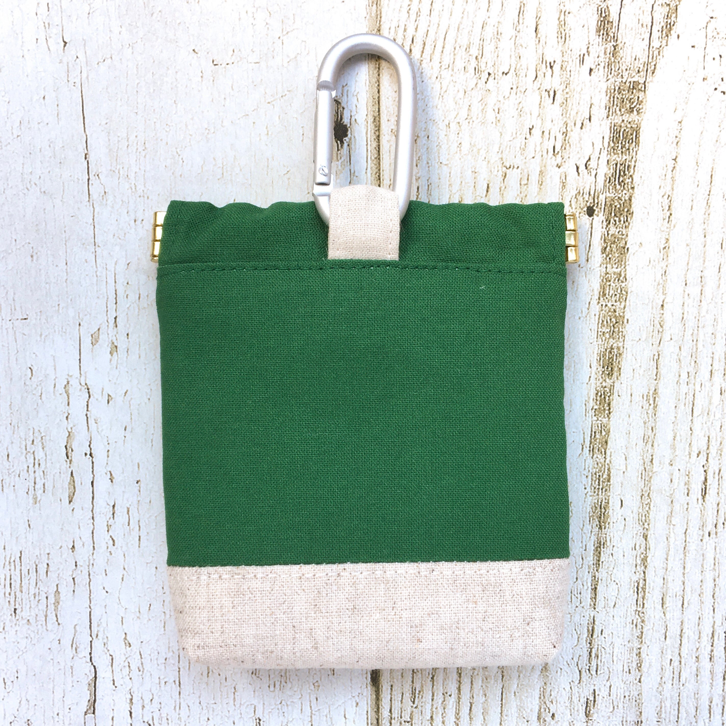 背面にはカラビナフック付きでバッグの持ち手などに掛けておくことができます。片手でパクパクと簡単に開閉できる使い勝手の良いポーチです。